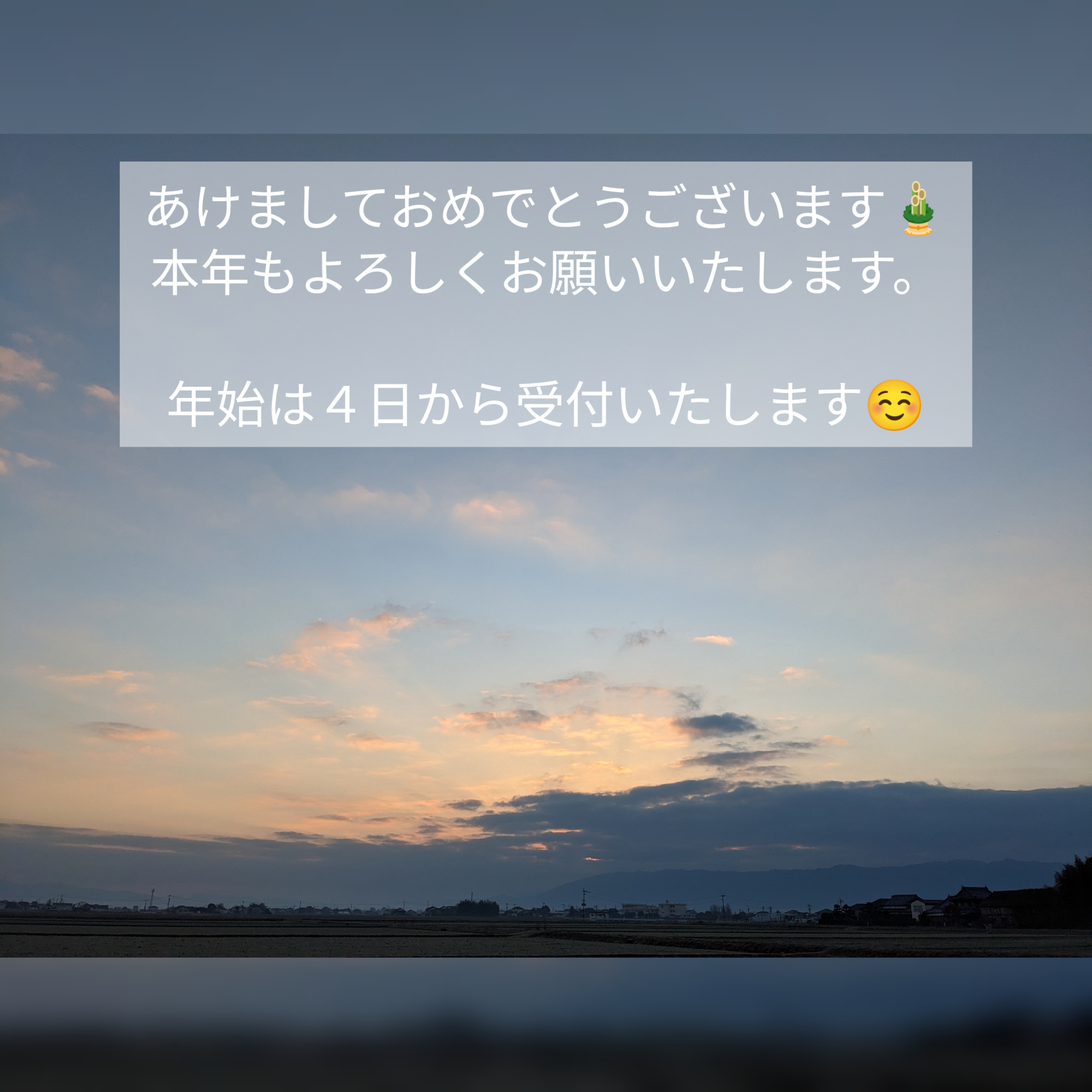 あけましておめでとうございます🌄 2023/01/01 あけましておめでとうございます🎍 本年もよろしくお願いいたします。 年始は4日から受付いたします☺️ 2023年の初日の出は、残念ながら見ることができませんでした😂天気は良かったのですが、ちょうど雲がかかっていて顔を出してもらえず…