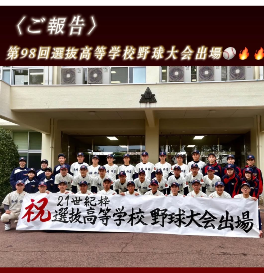 センバツ高校野球 出場決定! 2026/01/31 母校である長崎西高が、今春行われるセンバツ高校野球に、21世紀枠として出場することが決定しました⚾️ 秋の県大会から順調に勝ち上がり、九州大会でも立派な成績が評価され、見事、21世紀枠で選ばれました✨️ 野球部OBとして、めちゃくちゃうれしいです。 試合当日は、甲子園に応援に行きたい!