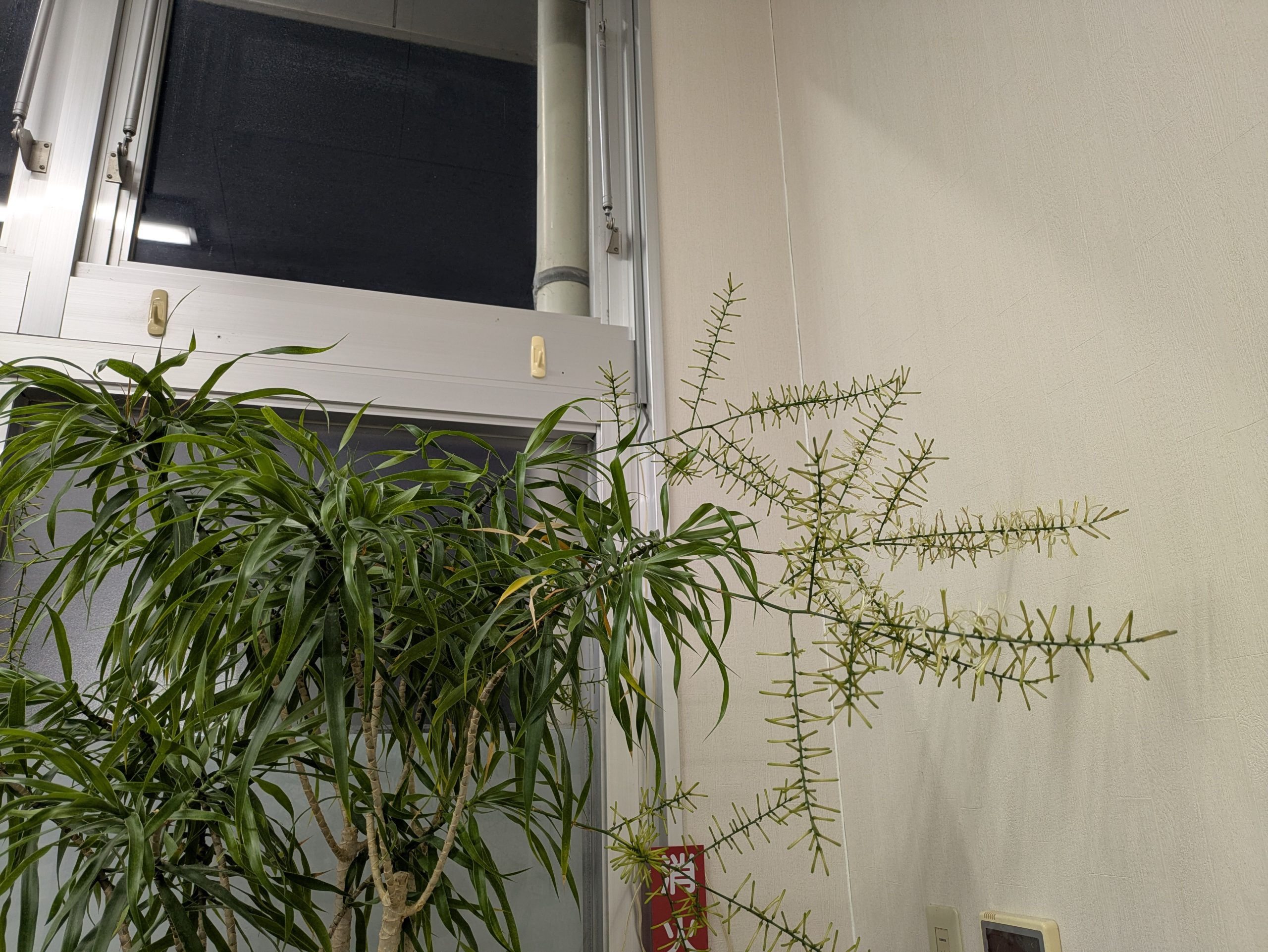 院内の観葉植物、ドラセナの花が咲き始めました。