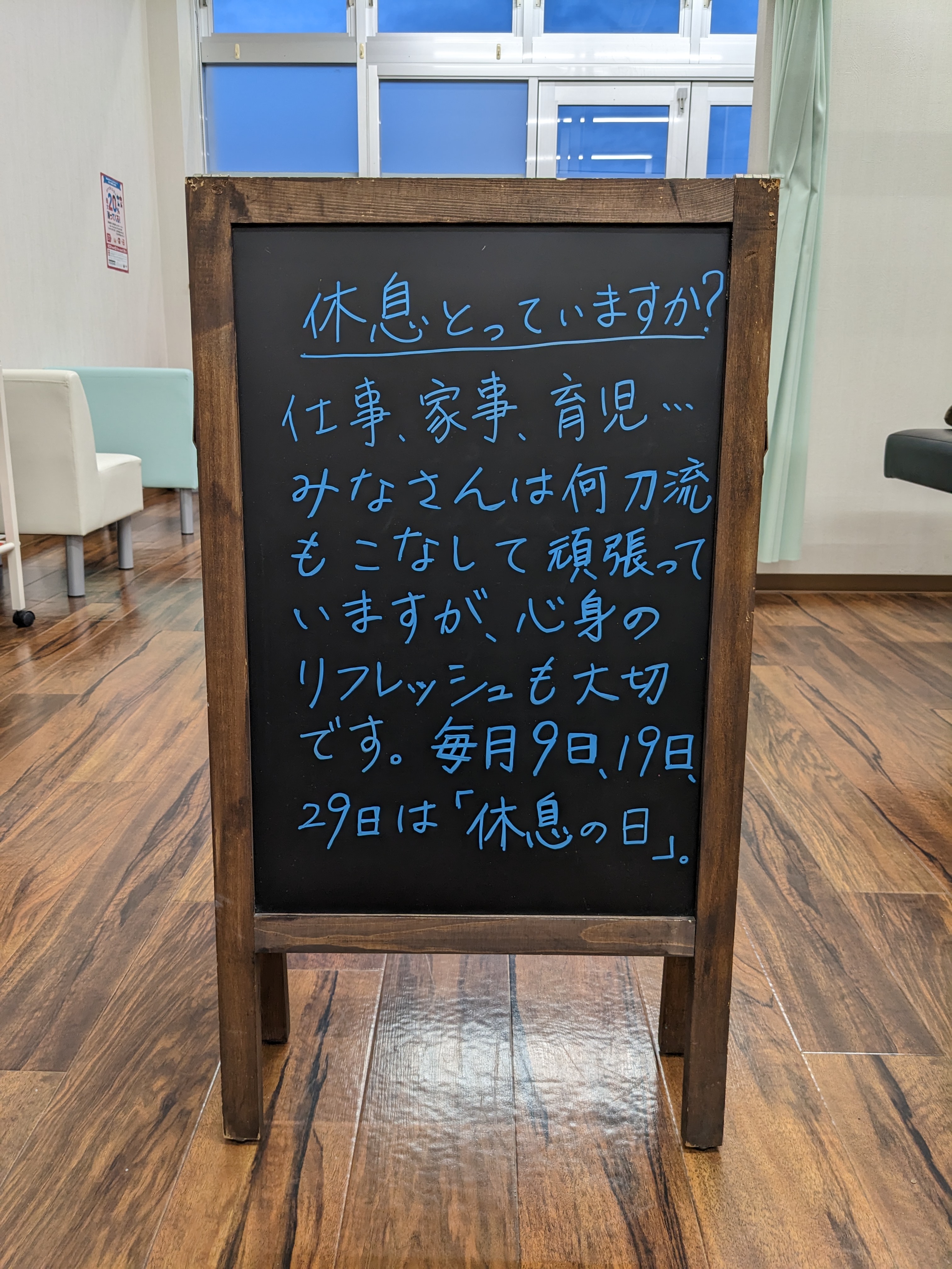 9のつく日は「休息の日」 2023/01/26 毎月9日・19日・29日は「休息の日」😌 仕事、家事、育児… 目まぐるしい毎日、みなさん休息はとれていますか? 心身が疲れていては、良いパフォーマンスはできません! メジャーリーグの大谷翔平選手は、睡眠をしっかりとることで疲労を軽減し、1試合1試合素晴らしい成績を残すことができています。 オンとオフを切り替えていきましょう✨