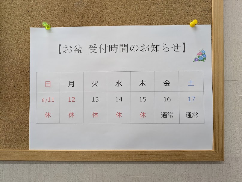8/12(祝・月) ~ 8/15(木)までお休みさせていただきます。